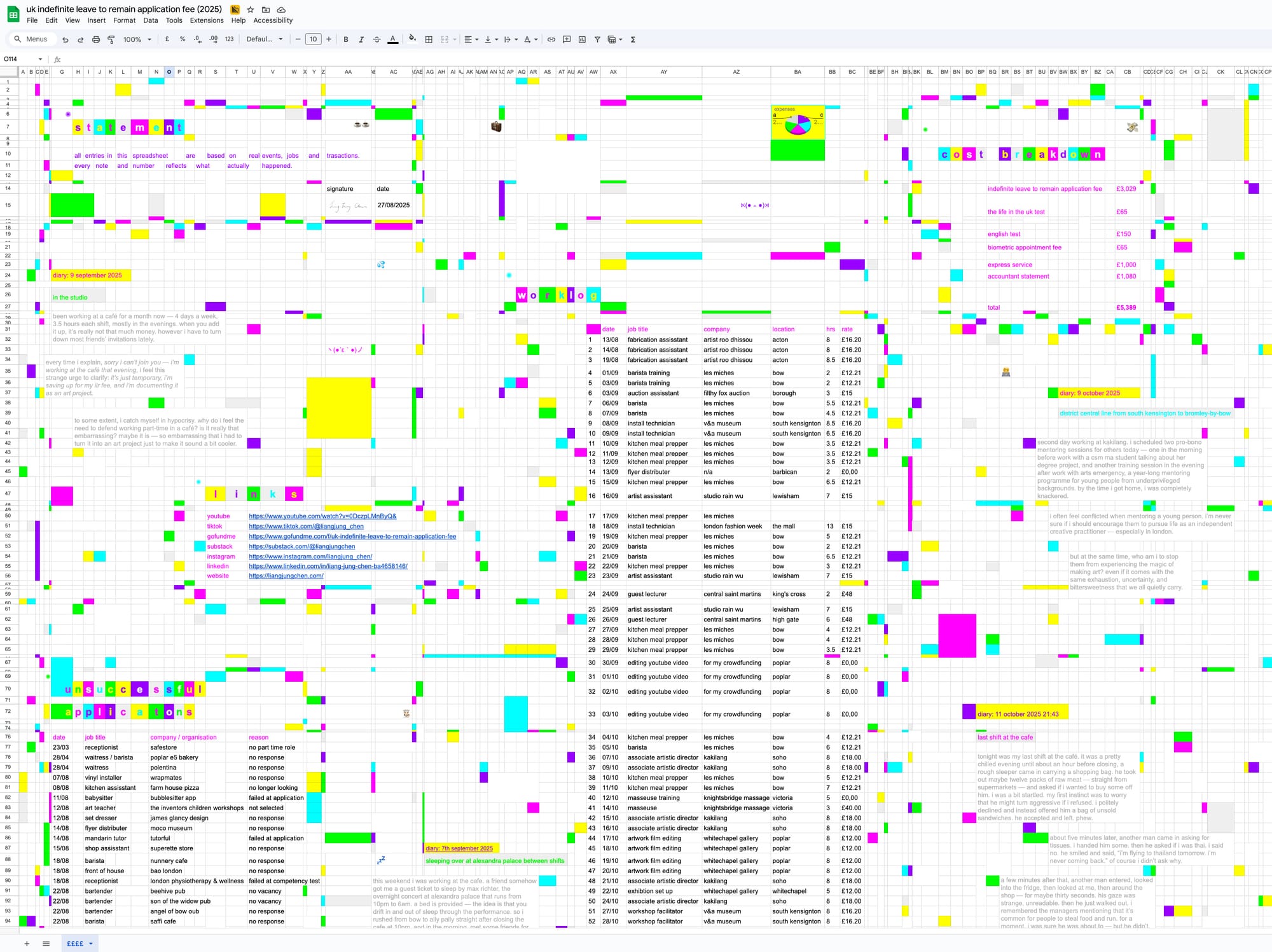 Responding to the cognitive dissonance of an algorithmic age, the moving‑image program Reading the Room examines how AI and emergent linguistic forms redefine concepts of home, belonging, and truth amid displacement, revealing the porous boundaries between the virtual and the real. Drawing on Jiang Yifan’s One Sunday Morning (2021), it investigates the tensions between human intuition and algorithmic logic. Among the 13 works are Liang‑Jung Chen’s UK Indefinite Leave to Remain Application Fee (2025), a color‑coded Google Sheet turned social performance on migration and bureaucracy; Jon Rafman’s Cloudy Heart – Strawberry Moon (2025), featuring his AI‑native pop musician; and Adrian Wong’s With Love from Hong Kong (Episode 1) and With Hate from Hong Kong (both 2025).