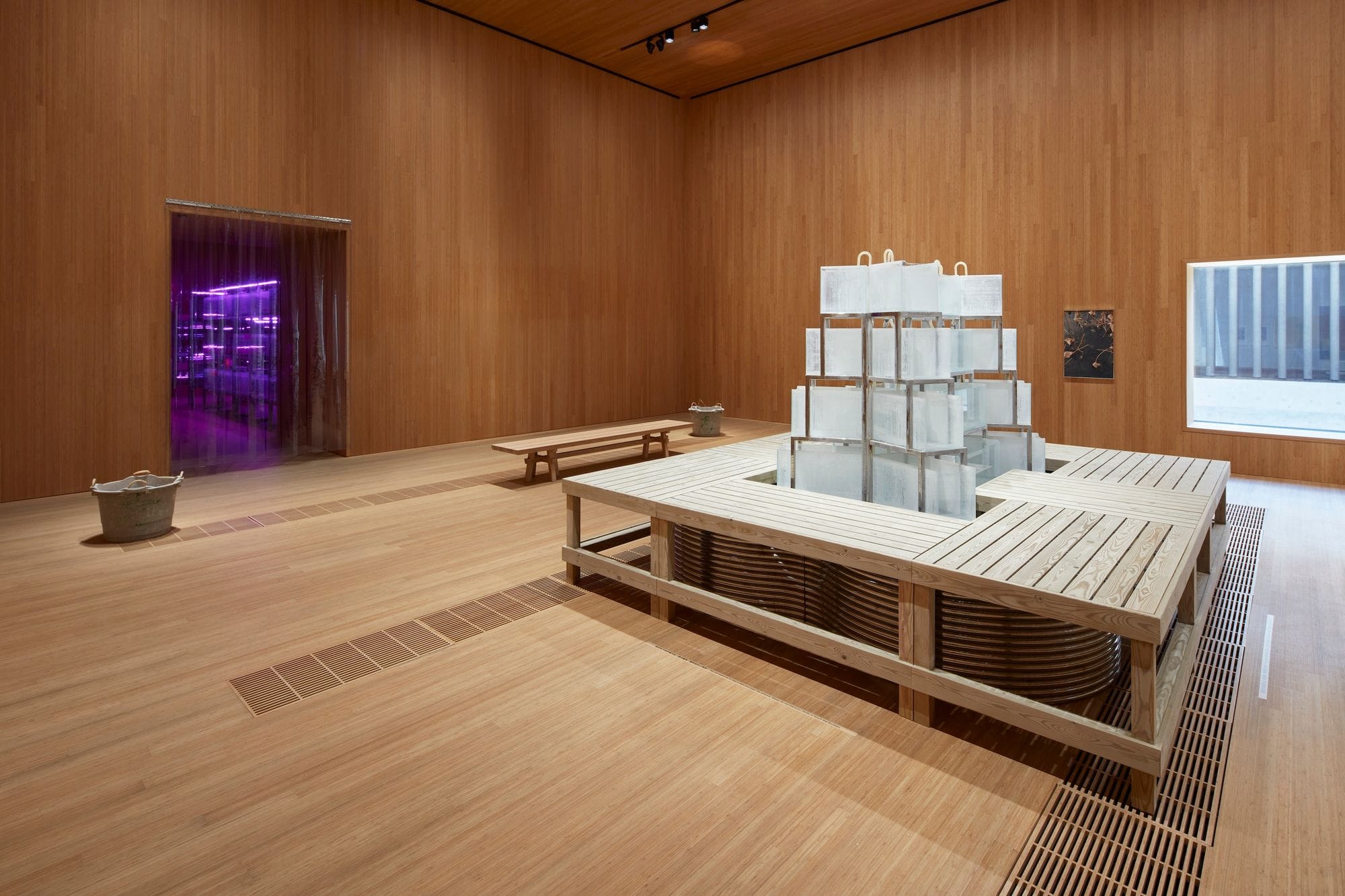 A similar shift takes place when Yeung’s fountains run dry. Fountains are not only the most public-facing of all vessels, but also the most optimistic: their endlessly looping flow proposes an ever-emergent, non-teleological geometry of desire. At M+, however, Yeung’s Pond of Never Enough (Under Construction) (2025) was parched, mute, and boarded up. Its glass panels are clouded by streaks of hard water stains, echoing paint drips or trails of bodily discharges like tears and cum. At first glance, Pond seemingly signals an emotional paucity or void. But as Chris Kraus observed in I Love Dick (1997), “desire isn’t lack, it’s surplus energy– a claustrophobia inside your skin.” A gutted fountain does not represent the absence of feeling, but the failure of that feeling to become legible: excess trapped just beneath the point of articulation. What we are looking at in Pond could also be the precursor to catharsis, rather than solely an inert relic.