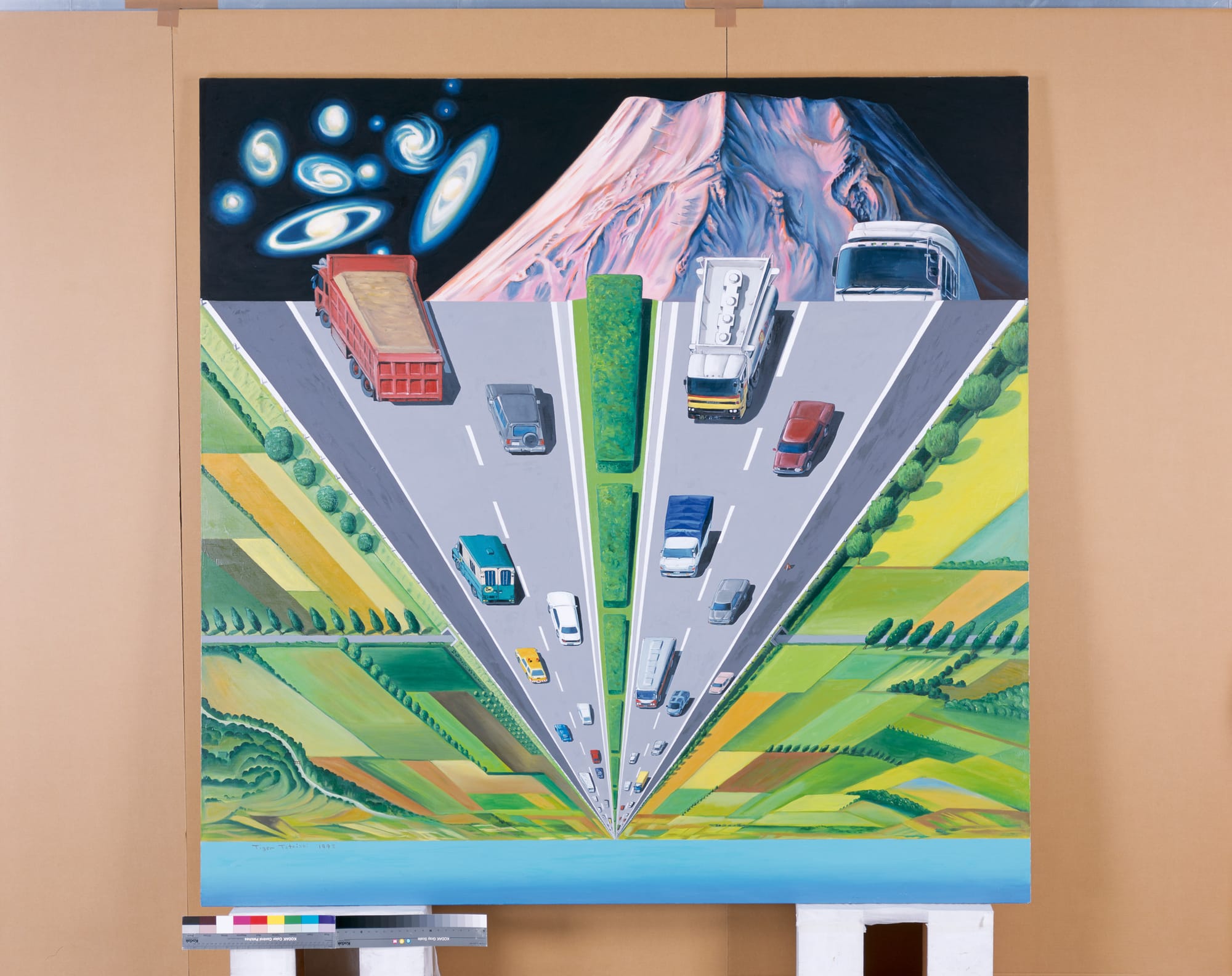 From whirling globes to fast-moving cars and donkeys, “Global Positioning System” probes the various infrastructures of mapping and mobility that define our contemporary existence. With more than 40 participating artists, the two-part group exhibition takes place at each of Art Jameel’s geographic bearings—highlighting wayfinding methods at the Jameel Arts Centre in Dubai, and cartographic practices at Hayy Jameel in Jeddah, respectively. The works on view—such as Tateishi Tiger’s FUJI HI-WAY (1992), a painting featuring an upended highway scene, and Fayçal Baghriche’s handcrafted illuminated globe Souvenir (2012)—comprise research-based critiques of architectural projects as well as conceptual pieces interrogating spatiotemporal perceptions.