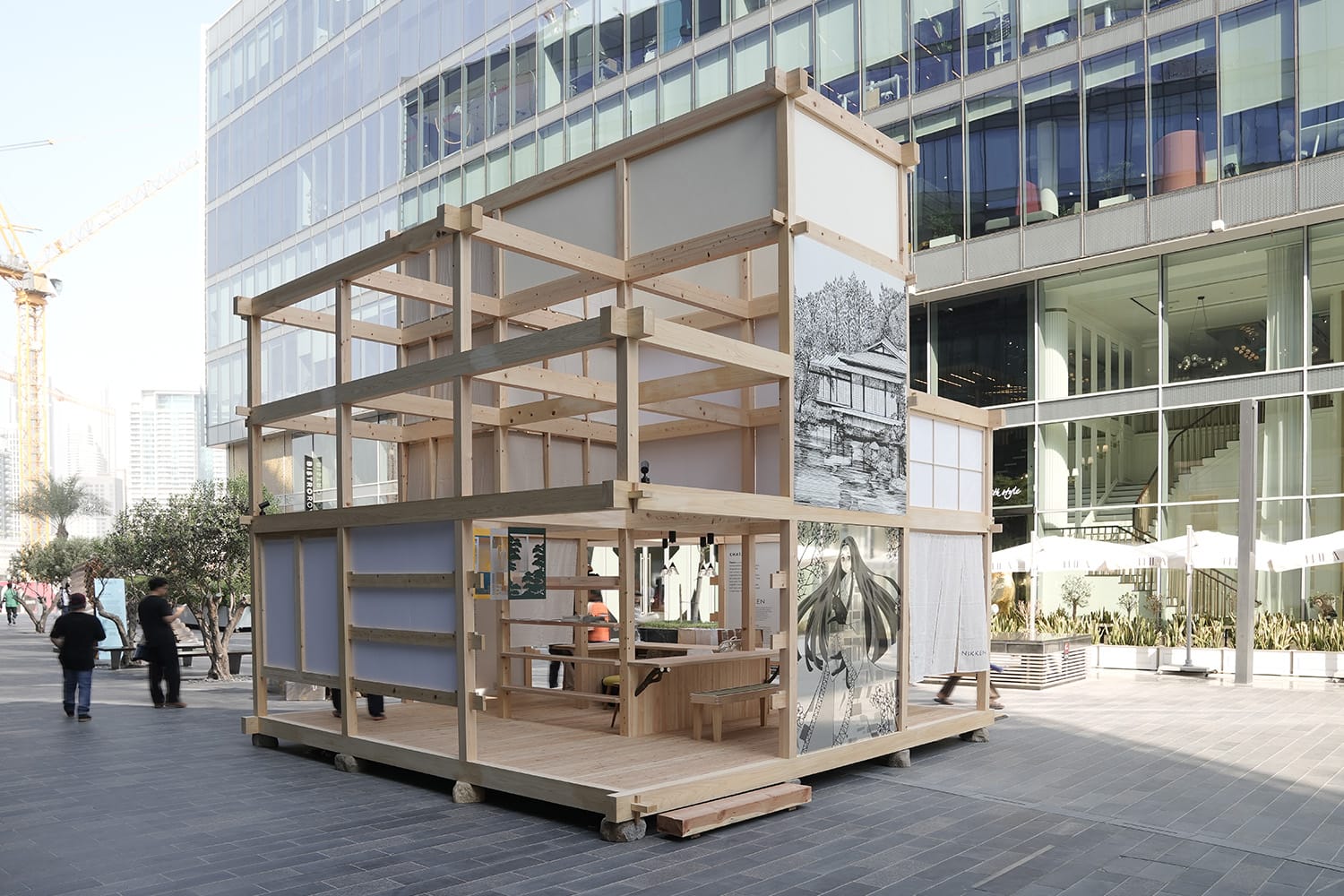 This attention to vernacular knowledge extended to other installations exploring collective experience. Nikken Sekkei partnered with SOBOKUYA, a Yamanashi-based carpentry workshop, to create Chatai, a hand-crafted wooden pavilion merging the Japanese chashitsu (tea room) and yatai (street stall) typologies. The structure integrated hospitality design with a limited-edition gift book by Abjad Design, using layered paper cuttings to depict Japanese landscapes and the Ise Grand Shrine’s periodic rebuilding—a meditation on cyclical renewal. Meanwhile, Spain’s Izaskun Chinchilla Architects, commissioned by Saudi Arabia’s Ithra, created Flamenco Essence: Lavender Pavilion, which translated the dramatic sweep of flamenco skirts into sculptural seating around an aromatic garden. The choice of lavender connected Spanish Manila shawls to Saudi botanical tradition, establishing what Chinchilla described as design’s capacity for “connecting community” rather than merely “presenting beautiful things.”