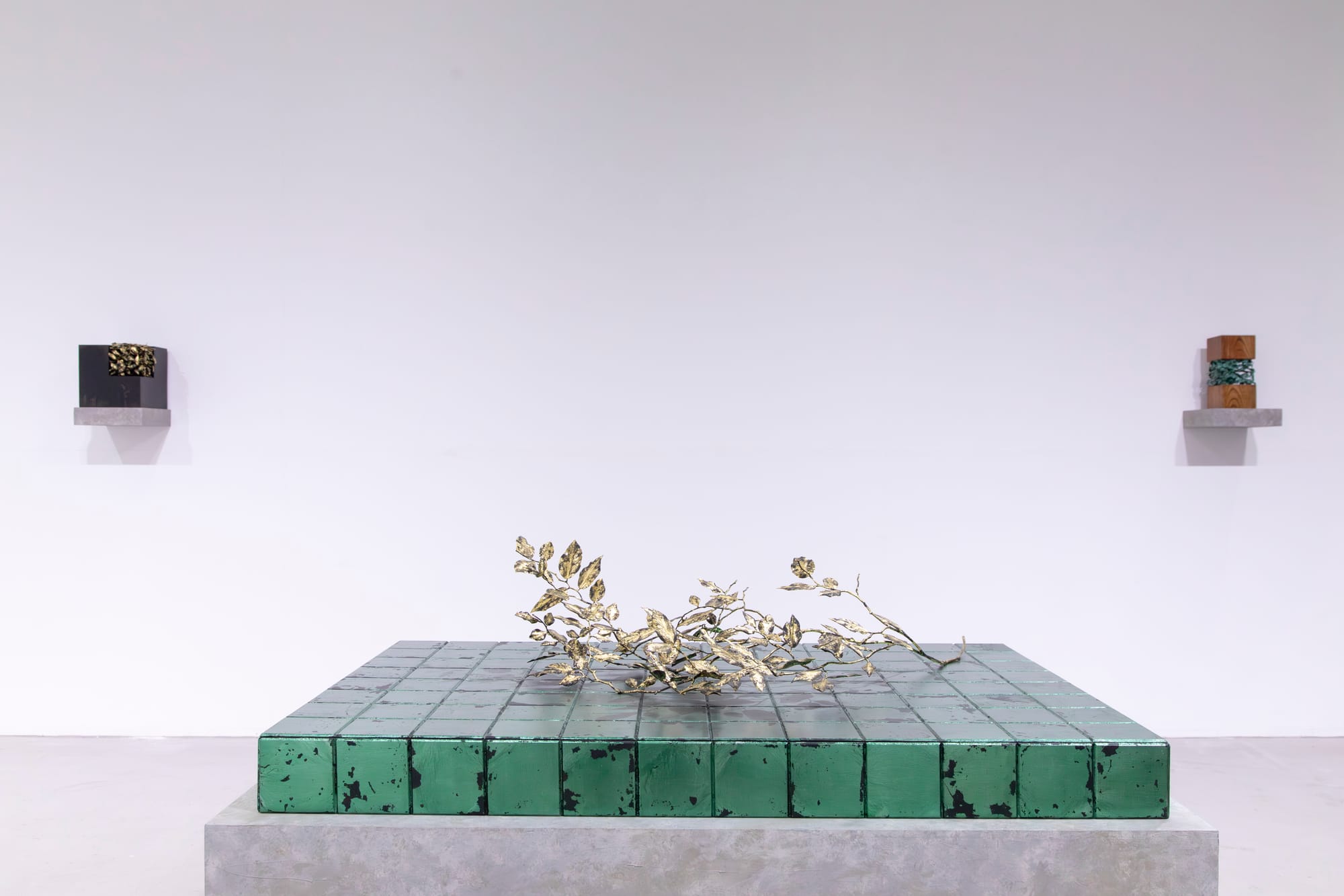 Take Ninagawa presented “Shinro Ohtake: Retina,” a collection of resin-covered chromogenic prints derived from decades-old degraded Polaroid negatives. The resulting images evoke extraterrestrial terrains or the colors and patterns of the human retina. At Kana Kawanishi Gallery, Kanji Hasegawa, a Tokyo University of the Arts sculpture graduate and former Soto Zen monk, experimented with ultraviolet (UV) prints in “Two Temporalities.” These prints served as trompe-l’oeil of actual shadows cast by intricately carved wooden wilting foliage against jewel-toned tiled backdrops. Hasegawa’s work explored the Buddhist concept of time as the duration between two events, contrasting with the Western linear, chronological perception. This contemplation was evident in the laborious process of carving and fixing the shadows using cyanotype printing, creating a contemporaneous record of the artwork’s creation.