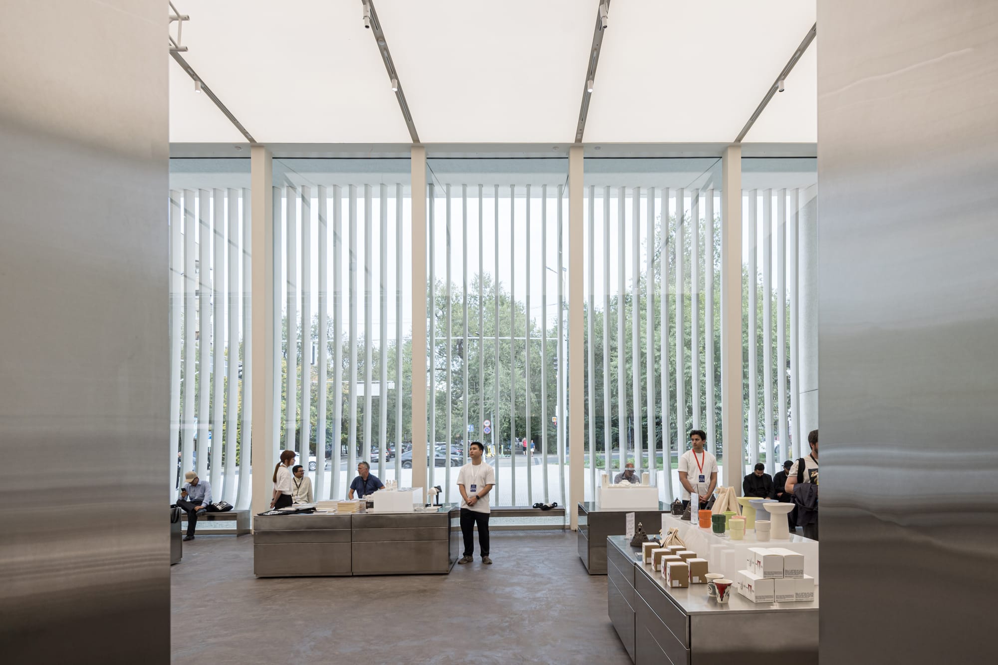 AK: You used to climb six steps to get inside. We lowered it so that the floor meets the street, creating a continuous surface—a kind of common ground, like the steppe, where movement is free in all directions. The old cinema was a sealed box; now it’s open.