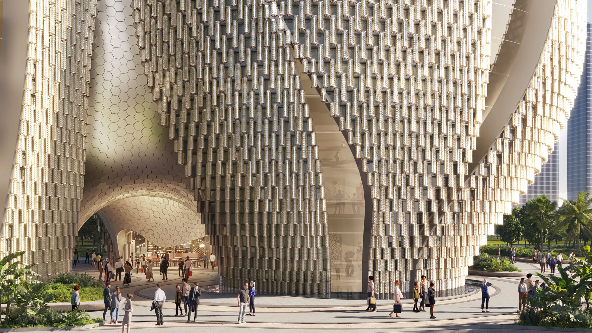 As you saw, the interior is quite fluid rather than segmented or rigid. It allows divisions and configurations to be introduced as needed, depending on what’s being shown. Meanwhile, the perimeter remains legible—somewhat organic—and acts as an interactive filter with the city, especially through the layer of glass tubes and the architectural strategies we developed around them. In that sense, it’s a layering of possibilities, with a highly flexible and programmable core at its center.