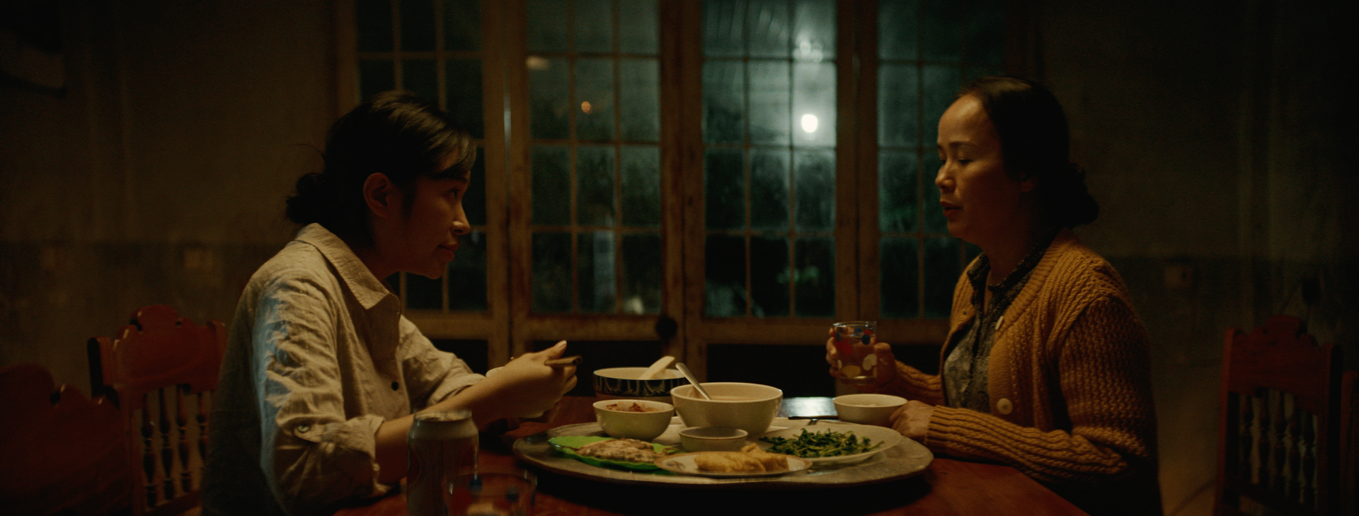 The film is fictional, but it interweaves the many true stories that we gathered of people who have been affected by UXO, directly and indirectly. Around 2020, we reached out to several NGOs that were involved in demining work, and I had the opportunity to follow one on a big mission where they unearthed a one-ton bomb from a hillside. That experience, and our documenting of it, became The Sounds of Cannons, Familiar Like Sad Refrains / Đại Bác Nghe Quen Như Câu Dạo Buồn (2021), a two-channel video paired with archival footage from the US Navy Seventh Fleet, which is notorious for having fired massive amounts of munitions into the land. In some ways, The Unburied Sounds of a Troubled Horizon is a follow-up, portraying certain characters that still deal with these enduring after-effects of war.