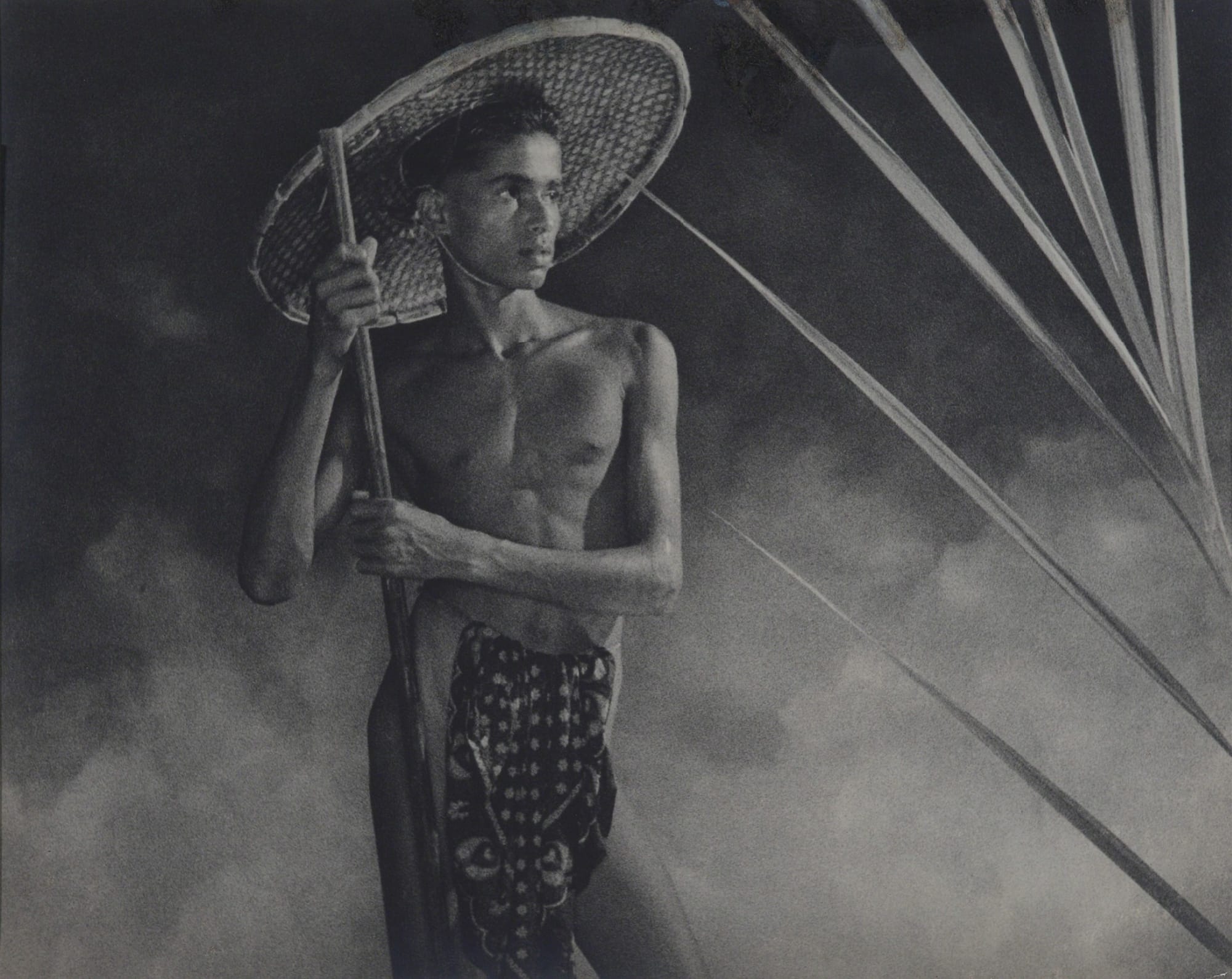Among Wendt’s entire back catalog, there is one group of images that stand out, both in terms of sheer quantity and pure visual presence: his sensual, homoerotic nudes. In a time and place where queerness was outlawed, these photographs are unblushingly defiant, and as beautiful as they are brazen. Still, Wendt just barely managed to stay within the bounds of decency: his subjects don traditional Ceylonese loincloths and assume elegant poses, contriving an overall quality of a classical nude or ethnographic study. However, most of these works remained in Wendt’s private collection and were never publicly exhibited. Back of a Youth (c.1934–40) is one of the better-known photographs from this series, the bold composition and tight crop putting the male subject front and center. Here, Wendt’s deft use of studio lighting mirrors the chiaroscuro of classical paintings and sculpture, gently illuminating the subject’s back to reveal tensed muscles under smooth, bronze-like skin before sinking into inky blacks. This effect is heightened by Wendt’s considerable darkroom skills, which allowed him to further push the heavy, shadowy rendering of the print. These boundary-pushing photographs have attracted their fair share of criticism, with Wendt’s barely suppressed desire submitting to a sexualized, othering gaze.