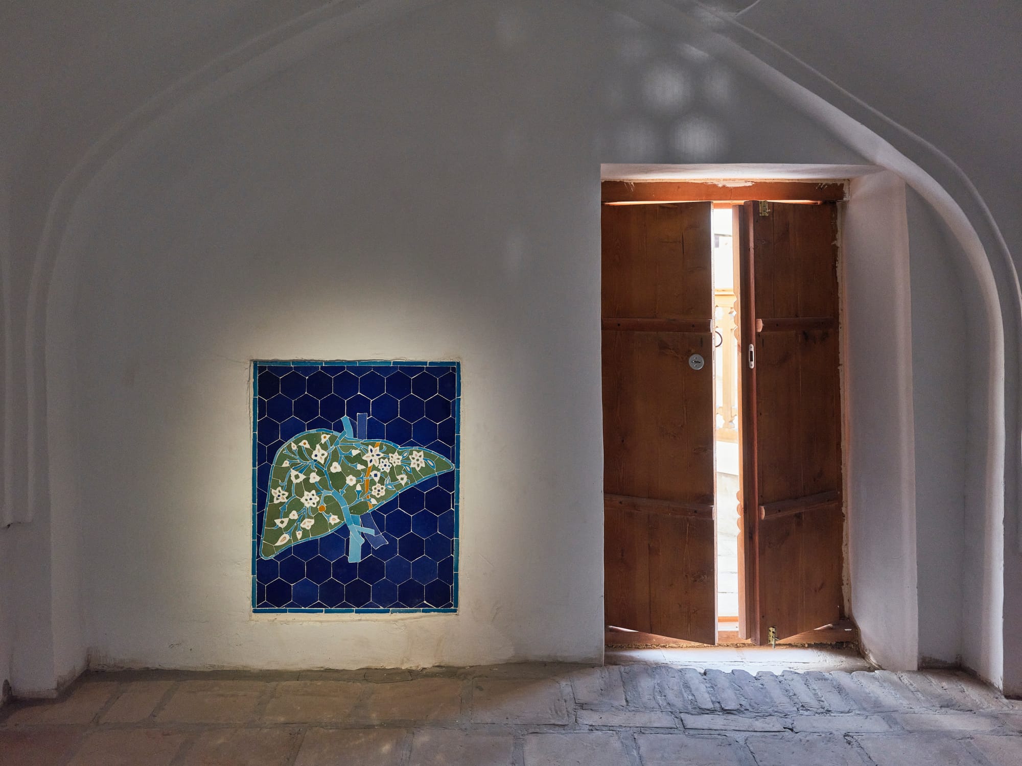 For the inaugural Bukhara Biennial, Uzbek artist Oyjon Khayrullaeva created Eight Lives (2024–25), a series of monumental mosaic sculptures depicting vital human organs installed across historic sites in her hometown. Drawing on the floral ornaments of Islamic architecture in Samarkand and Bukhara, the artist transformed architectural details into anatomical forms. In this conversation with Singaporean writer Chin-chin Yap, Khayrullaeva discusses her transition from photography to digital collage, the psychosomatic effects of creating each installation for the biennial, and how her practice transmutes bodily pain into blooming, regenerative beauty.