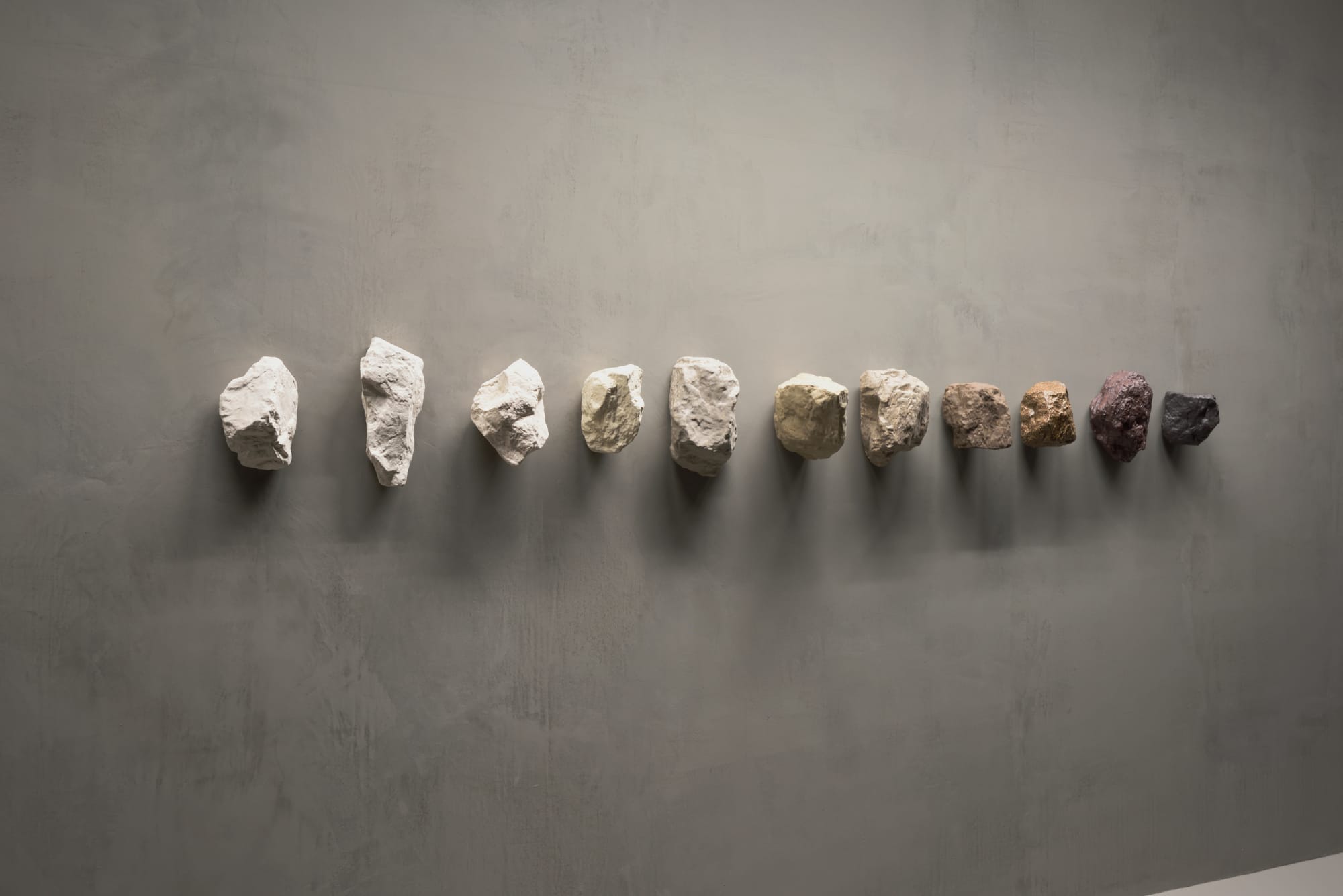 Through the medium of ceramics, time thickens—linking the ancestral, the geological, and the human. Yasmin Smith’s wall-mounted Forest (2022), resembling geological specimens, reveals layers of deep time disrupted by extractive human activity. Cast from coal lumps mined around Sydney and glazed with fly ash from power stations along Australia’s eastern seaboard, each piece varies subtly in hue and texture. Meanwhile, a backdrop painted with Nagoya coal ash further extends a dialogue with materials condensed over millennia. Kyoto-based Akane Saijo’s The Pomegranate of Sisyphus (2025) transforms ceramics into a performative medium, restoring its corporeal origins. Her pomegranate-inspired sculptures, which serve as allegories of local labor, feature mouth-like openings that invite skin-to-skin contact during accompanying performances, rekindling intimacy with the earth and reimagining ceramics as living, relational bodies.