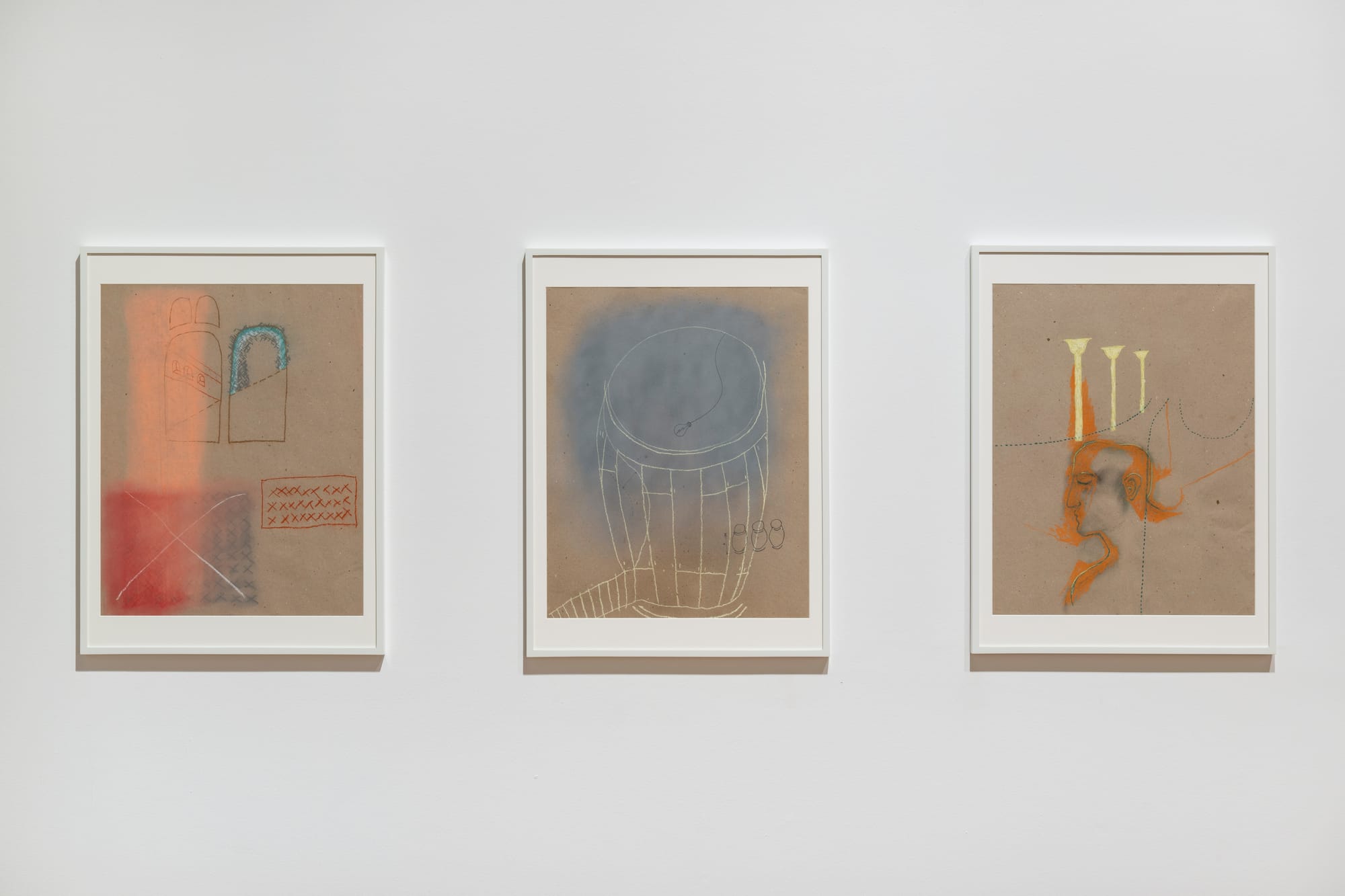 Installation views of HAMAD BUTT’s Familiars, 1992, at “Hamad Butt: Apprehensions,” Whitechapel Gallery, London, 2025. Photo by Damian Griffiths. Courtesy Whitechapel Gallery.