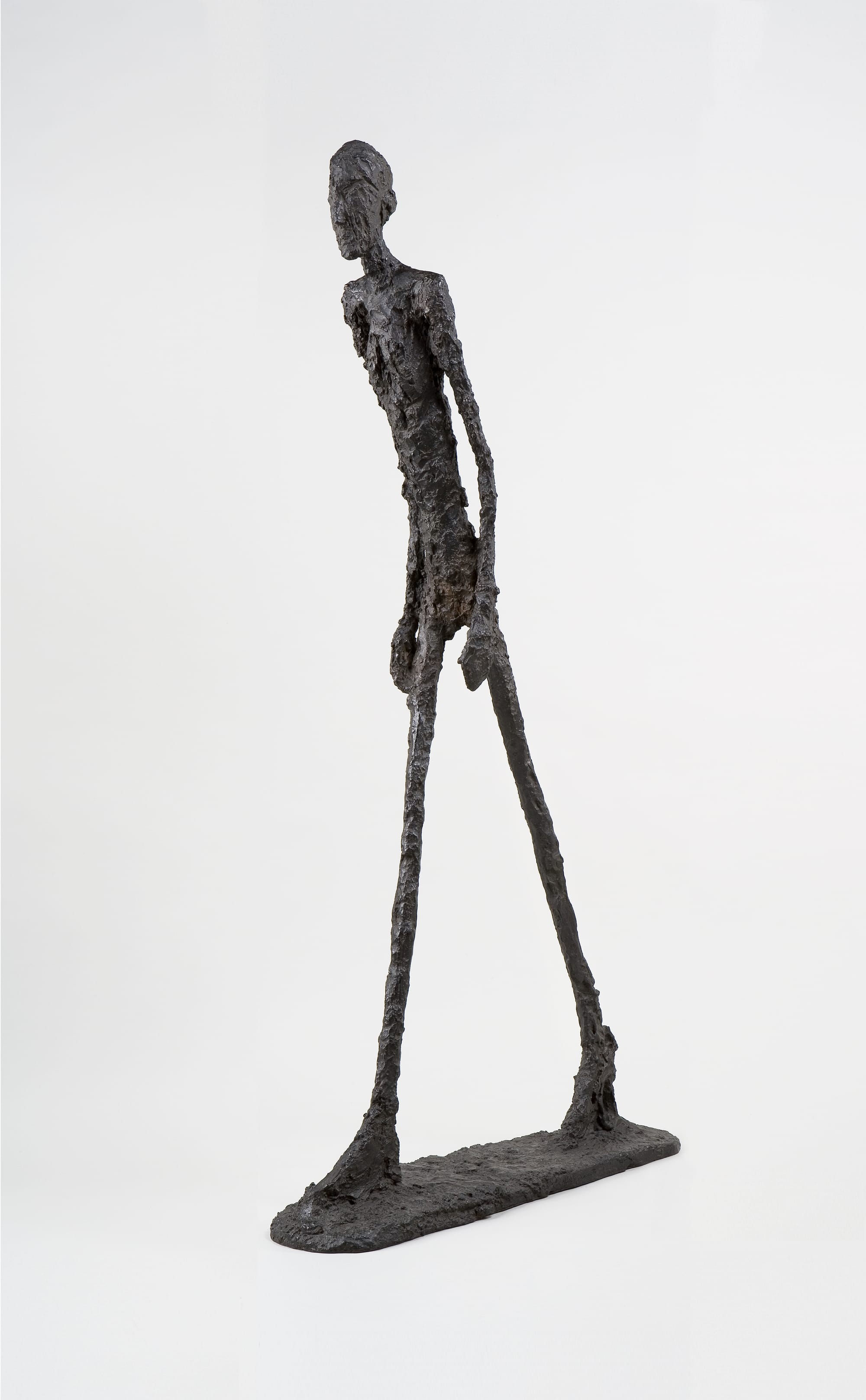 Best known for his elongated, attenuated figures, Giacometti sought not to create idealized bodies but to translate his own fractured perceptions of people and space into sculptural forms. Having lived through both World Wars, his work became a study of endurance in the face of extreme physical and psychological fatigue. Stripped of volume, poised between movement and stasis—his figures intend to convey an empathetic observation of humanity rather than a solely physical recreation. Walking Man I (1960), for instance, with its ghostly propulsion, and Standing Woman (1957), rooted and statuesque, anchor this exhibition in a midcentury reckoning with trauma and reconstruction.