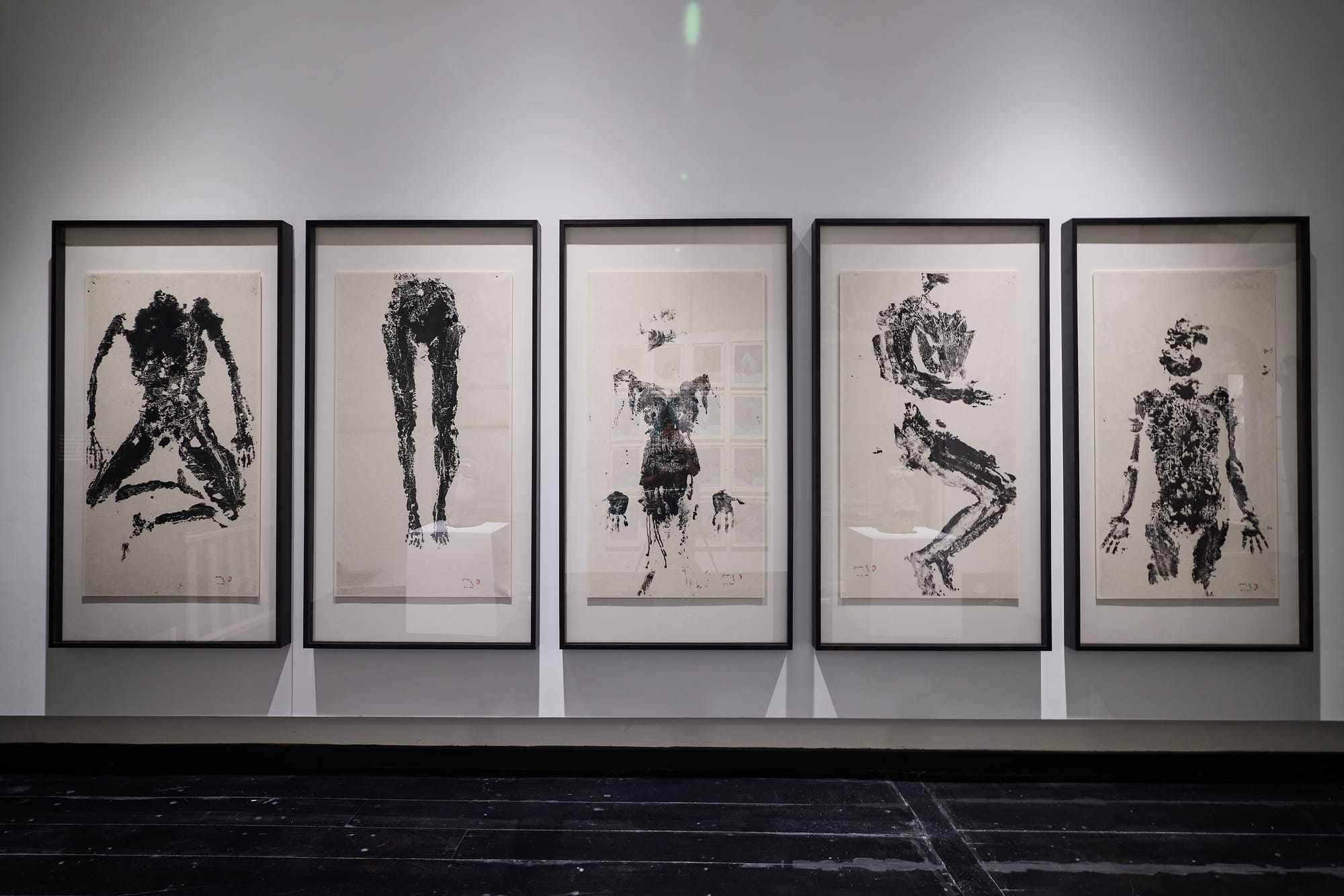 Revolution greets you at the door of The Private Museum: in La Rivoluzione Siamo Noi (1972), Joseph Beuys strides forward, man as agent of history and progress—purposeful, assured, advancing. Nearby, Lee Wen’s Anthropometry Revision-INK Series No.06 (2008) halts that momentum: inked flesh is pressed on paper, leaving a life-sized trace—figure as evidence, measurement turned critique. Where Beuys projects forward thrust, Lee insists on gravity, tethering agency to corpus.