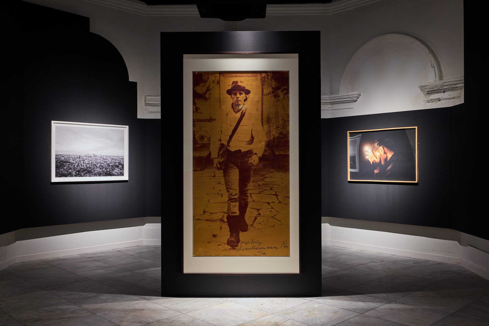 Installation views of JOSEPH BEUY’s La Rivoluzione Siamo Noi, 1972 (left); and LEE WEN’s Anthropometry Revision-INK Series, 2008 (right), at “Human Being Human: Selections from the Collection of John and Cheryl Chia,” The Private Museum, Singapore, 2026. Courtesy The Private Museum.