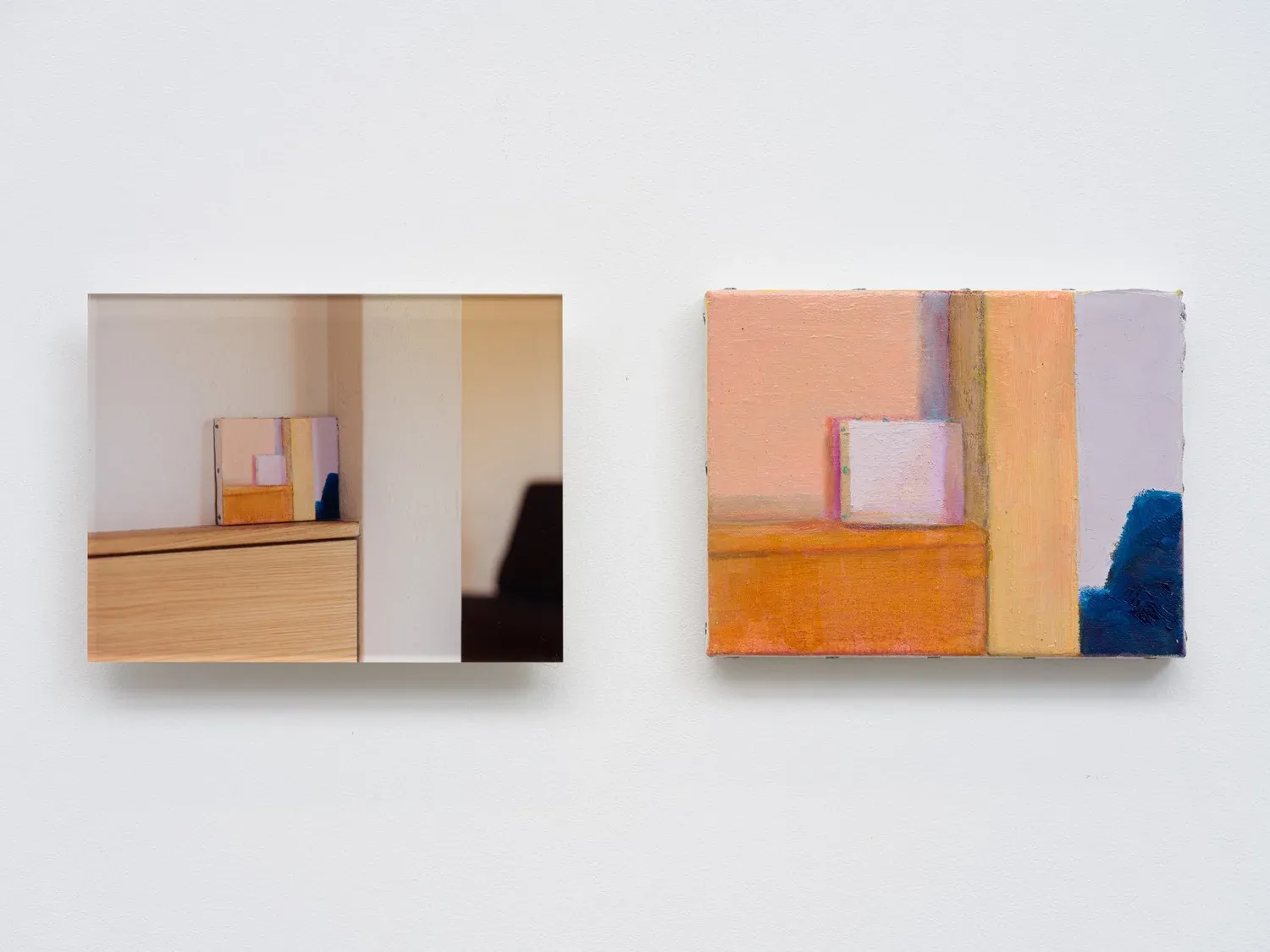 Elsewhere, Emi Otaguro’s suncatcher works (2023) abandon painting’s usual supports: faint images and smudged washes are brushed onto fragile pocket tissues, propped on tiny acrylic ledges. Nearby, two photographic prints from the artist’s Sun bath series (2016) pursue a related precarity, deriving from reliefs carved out of chewing gum and briefly laid on the fur of a stray cat. Here, texture is less thickness than exposure and wear—sun, skin, dust, and time abrading perception to the edge of erasure.