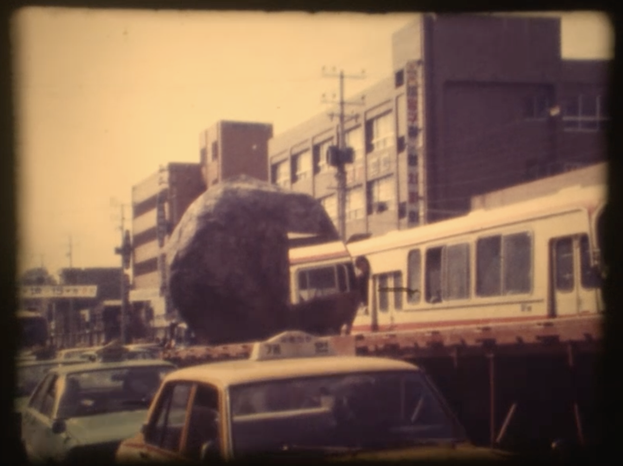 A heavy-duty flatbed truck moves through an urban landscape, carrying an artificial boulder nearly as tall as the people who gathered to watch. Its deliberate pace appears contagious: surrounding vehicles decelerate, while curious faces peek out of passing bus and taxi windows. The scene comes from Park Hyunki’s Pass Through the City (1981), a three-part performance in which the artist sent a mirror-embedded boulder through the streets of Daegu, South Korea, turning the city into a stage for reflection. Revisited at Gallery Hyundai through photographs and videos, the project captures Park’s early inquiries into how technology conditions seeing and being seen at the dawn of Korea’s media age in the 1980s.
